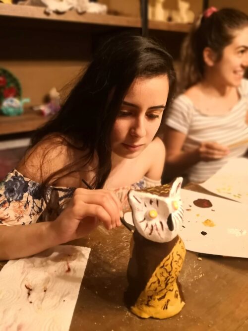 Sanatın 3. Boyutuna doğru yolculuğa çıkmak isteyen heykel tutkunları için hazırladığımız heykel kursu eğitim programını mutlaka denemelisiniz. Hafta içi iş çıkışı (akşam) yada hafta sonu öğleden sonra devam eden heykel kurslarımız katılımcının istek ve hedefine özel hazırladığımız yıllık programla, ilham vermesi için hazırlanmış heykel atölyesinde keyifli müzikler eşliğinde ortalama 3 saat olarak ilerlemektedir. Heykel atölyemizde yetişkin katılımcılarımız sırasıyla, geometrik şekillendirme, oran-orantı, objeden ölçü alma, perspektif eğitimi alabilmekte temel eğitimi tamamladıktan sonra kendi özgün ürünlerini üretebilmektedir. Heykel derslerimiz çocuk öğrencilerimizde resim kursu içine entegre edilirken, yetişkin öğrencilerimiz için ayrı grup ve saatler mevcuttur. Günlük hayatın stresinden ve monotonluğundan sizi uzaklaştırırken, görmeyi, hissedip şekillendirmeyi hatta bir süre sonra kendi tasarımlarınızı ortaya koyabildiğiniz ve tüm bunları edinirken sosyalleşebileceğiniz grup derslerimize herkes katılabilir. Butik gruplarla olan heykel kurslarımızda eğitmenlerimiz her katılımcımıza birebir ilgiyle heykelin geçmişten günümüze tarihine ve örneklerine değinerek, heykel yapma tekniklerini ana malzemesi olan kil ve farklı malzemelerle kazandırmaktadır. Haftada bir gün devam eden heykel kurslarımızı hafta içi iş çıkışı eğitim almak isteyen katılımcılarımız çarşamba akşamları 19.00 grubuyla devam ederken hafta sonu gündüz tercih eden katılımcılarımız Pazar günleri 14.00 grubunu tercih edebilir.