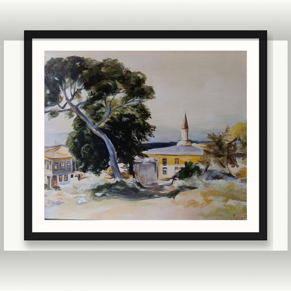 Günümüzden uzaklaşmak ve 1800lere bir pencere açmak için  için sadece başınızı kaldırmanız yeterli. Bu tablo, asıldığı duvarda bir pencere açarak sizi o  döneme huzurlu kasaba iklimine taşıyacak. Klasik Anadolu ruhunu modern ve ferah bir fırça yorumuyla evinde yaşatmak isteyenler için kaçırılmayacak bir dinginlik kaynağı.