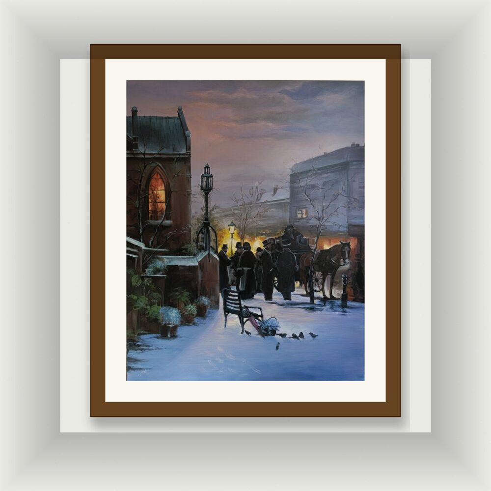 Bu tablo, sadece bir manzara değil; içinde kaybolabileceğiniz bir hikaye anlatıyor. Kar üzerindeki ayak seslerini ve atlı arabaların tıkırtısını duyabileceğiniz kadar canlı olan bu eser, mekanınıza klasik bir Avrupa asaletini ve kış akşamlarının o huzurlu melankolisini taşıyacak. Zamansız bir zarafeti duvarında görmek isteyenler için eşsiz bir parça.