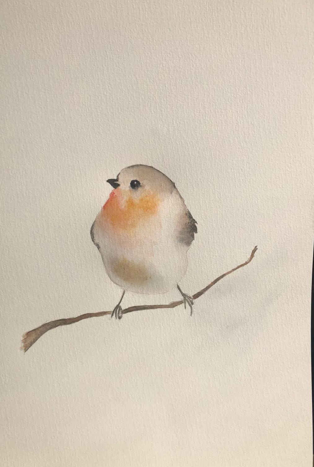 İnce bir dalın ucunda sakince duran küçük bir kuşu betimleyen, suluboyanın şeffaf ve hafif dokusunu hissettiren zarif bir çalışma. Minimalist yaklaşımıyla huzurlu ve sade bir atmosfer arayanlar için tasarlandı.