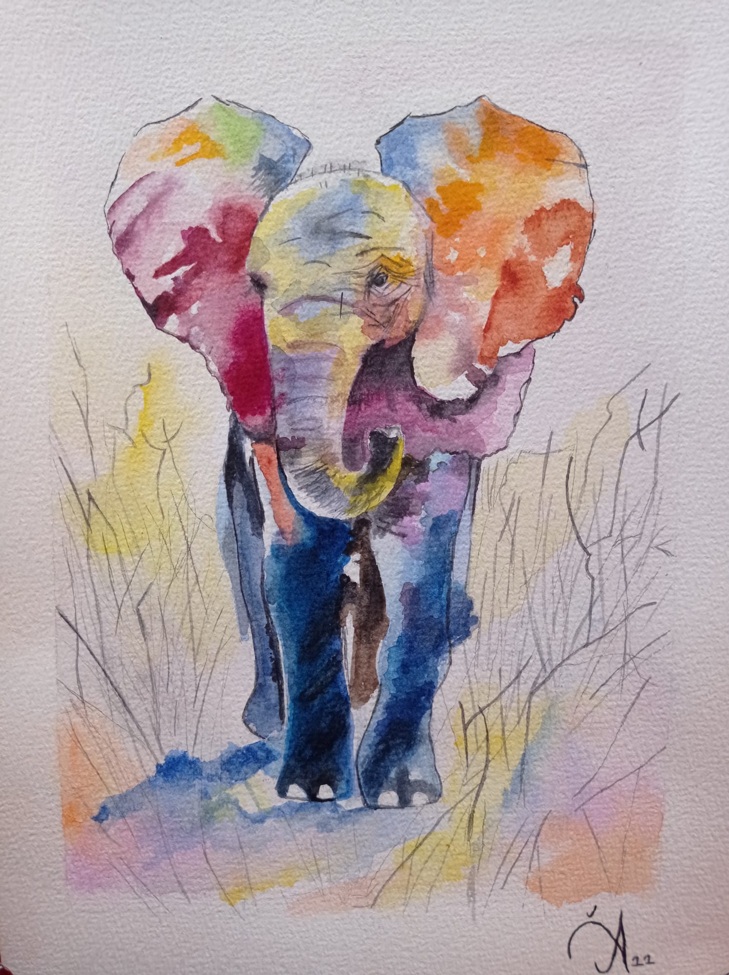 Sulu boyanın özgürce dağılan renkleriyle hayat bulan, sembolik ve dinamik bir hayvan portresi.