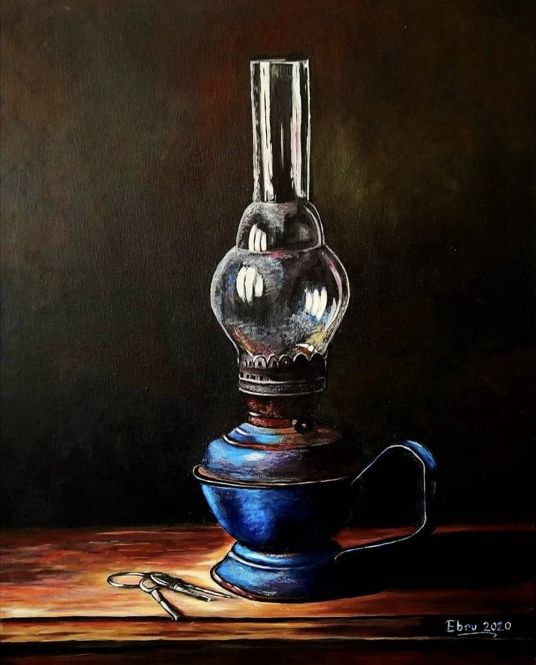 Işığın karanlık üzerindeki oyununu (Chiaroscuro) harika bir ustalıkla işleyen bu eser, geçmişe dair sıcak bir özlem barındırıyor. Camın üzerindeki parlamalar ve yanındaki anahtarlar, gizemli bir hikaye anlatıyor.