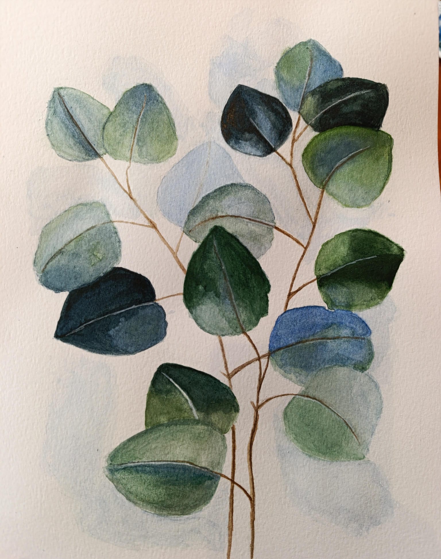 Sulu boyanın katmanlı yapısını en güzel gösteren botanik bir çalışma. Farklı yeşil ve füme tonlarının iç içe geçtiği bu okaliptüs dalları, mekana doğal bir ferahlık katıyor. Gölgeli geçişleri sayesinde derinlik algısı yaratan bu parça, doğanın iyileştirici gücünü duvarınıza taşıyor.