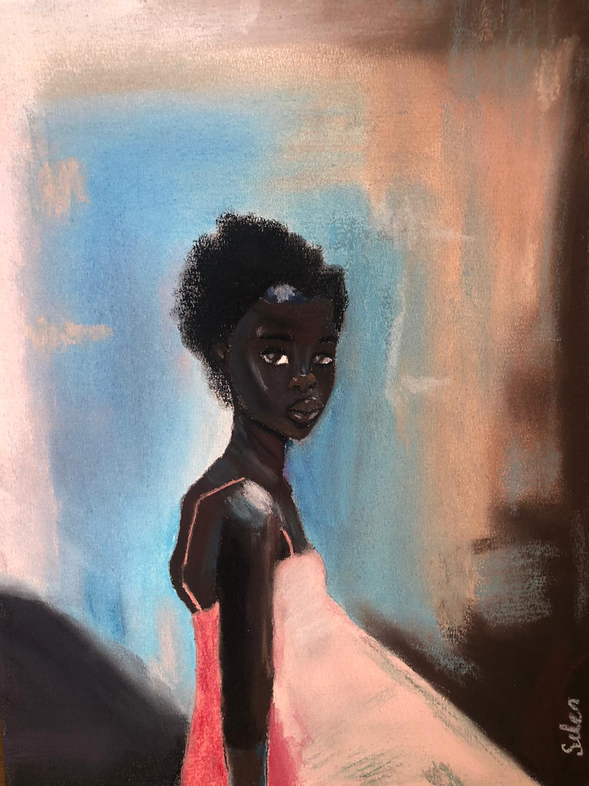 Figürün vakur duruşu ve fondaki pastel geçişlerin uyumu. Işığın omuz ve yüz hatlarındaki kullanımı, karaktere güçlü bir ifade katıyor.