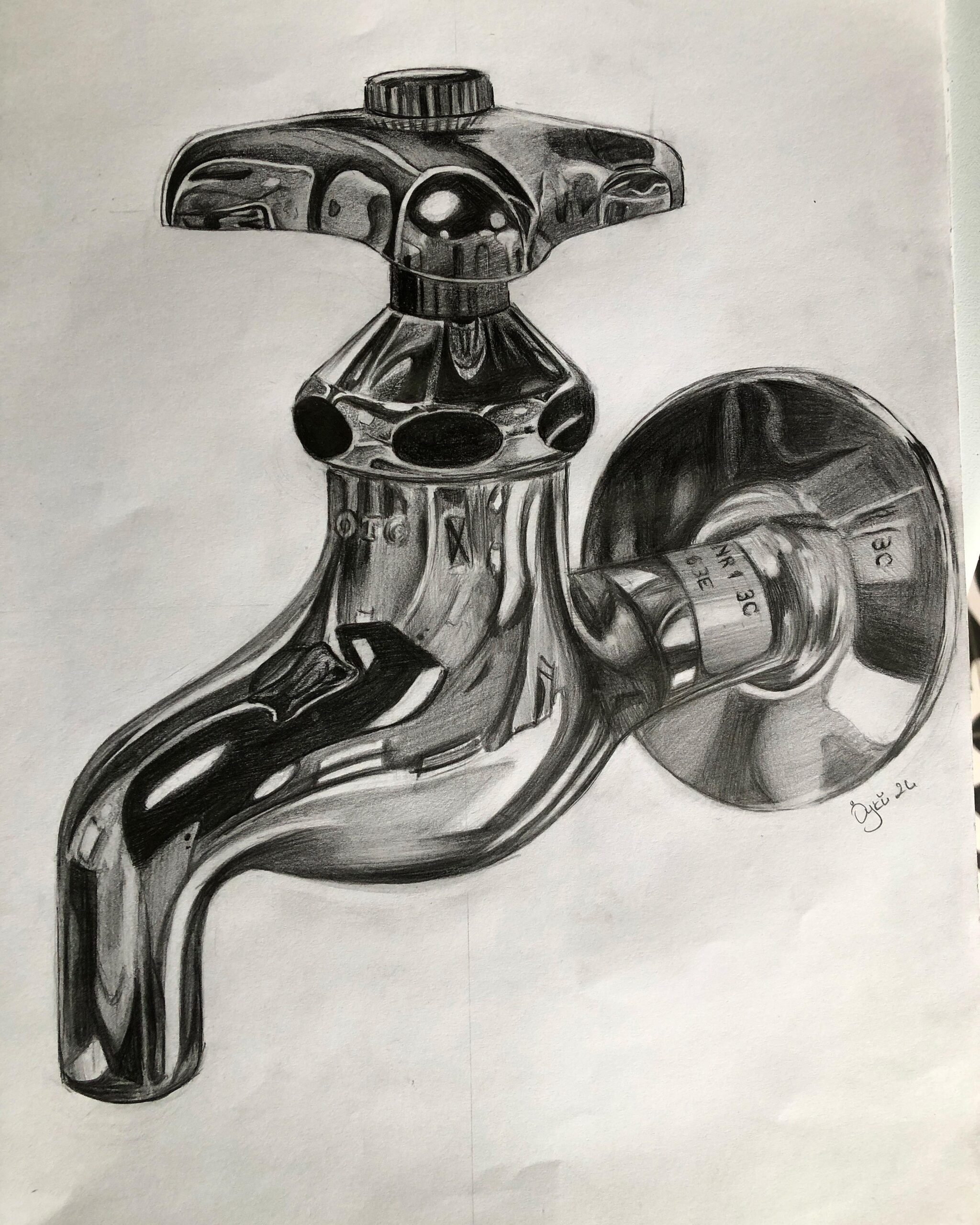 Metal üzerindeki ışık oyunlarını ve yansımaları net bir şekilde gösteren, modern bir çalışma. Keskin hatları ve gerçekçi gölgeleriyle dikkat çekiyor. Modern mutfaklarda, banyo girişlerinde veya endüstriyel tasarımlı ofislerde çok net ve güçlü durur.